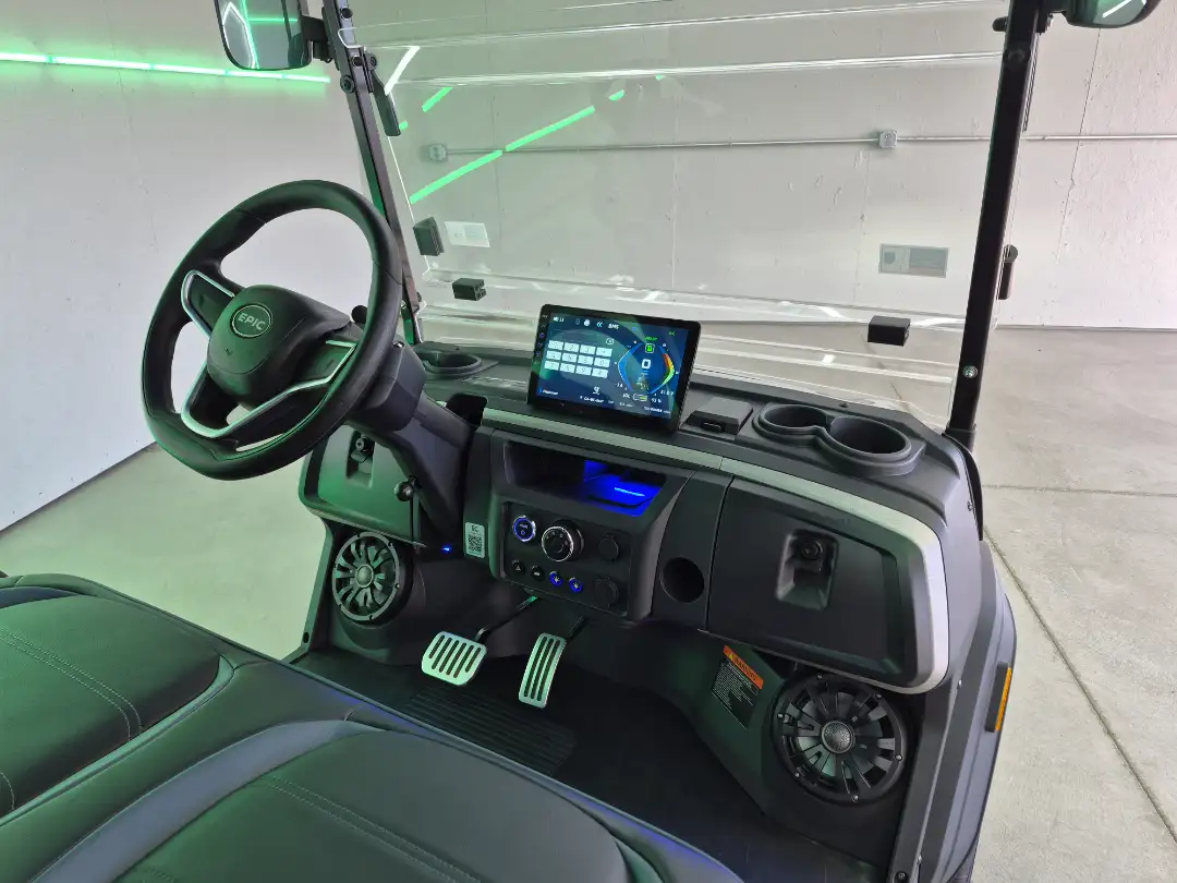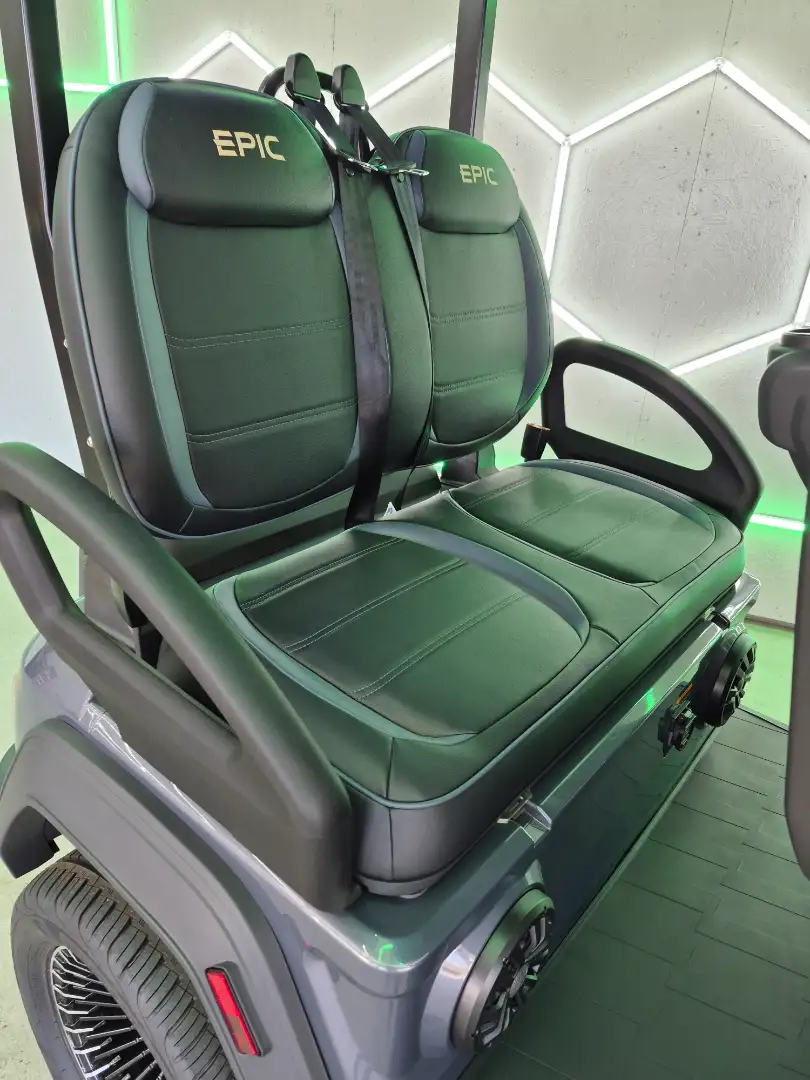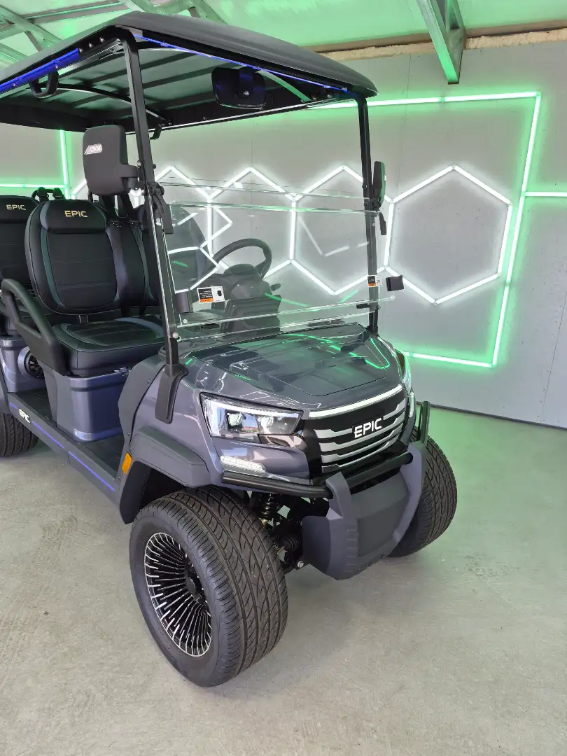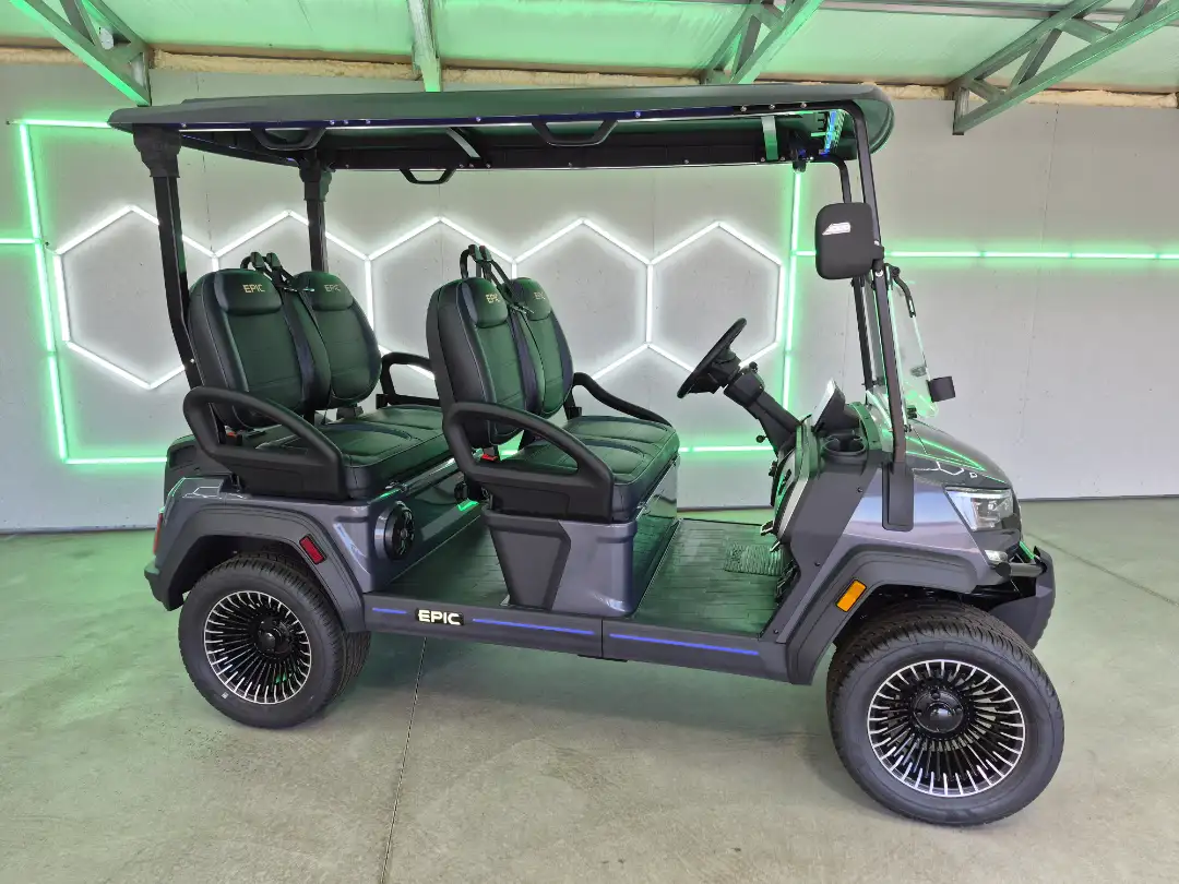 Experience the future of golf carts with the 2025 Epic E40FX, featuring a powerful 6.3kW AC motor and advanced safety lighting. This model sets benchmarks in performance and luxury.
