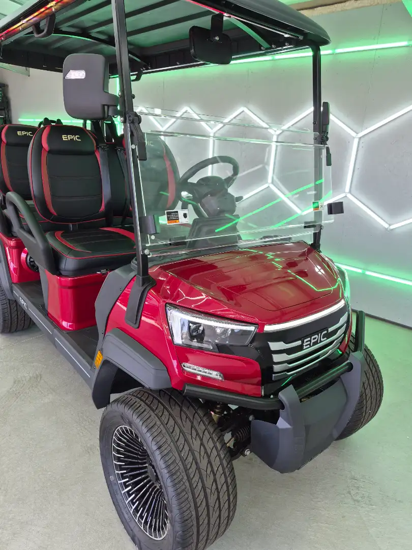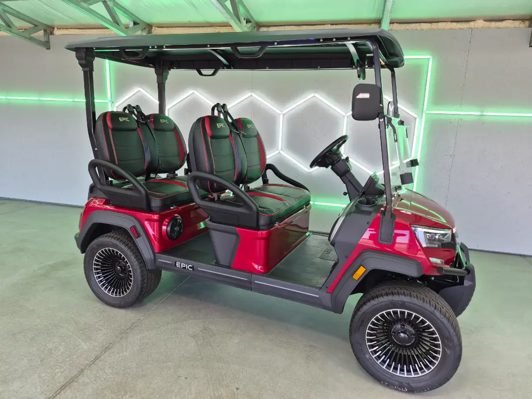 With an innovative body design and luxurious features, the 2026 Epic E40FX ensures an enjoyable ride for up to 4 passengers. Its range of 25 to 35 miles at 20 mph makes it perfect for both urban and suburban settings.